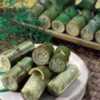將凈肥腸切成2厘米寬的菱形塊,姜切片,炒鍋上火放入水、料酒、姜片,燒沸后將肥腸焯水撈起。將余下的姜切末、干椒切末,將焯過水的肥腸裝在瓷缽內(nèi)用料酒、醬油、適顯的鹽、味精腌漬一個(gè)小時(shí)。將姜末、干椒末、五香米粉、脆漬好的肥腸,加入適量的水,拌勻待用。取竹簡(jiǎn)一只(兩端留節(jié)、從面上開一蓋),刷上油,墊好生菜,把拌好的粉蒸肥腸生料放人竹筒內(nèi),蓋上蓋。然后將竹筒粉蒸腸上籠,用旺火長(zhǎng)時(shí)間蒸至肥腸酥爛。上席前,澆上熱紅油即成。其特點(diǎn):竹香味濃,酥爛鮮辣。