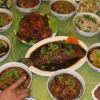 傳統(tǒng)宴席十大碗是微山湖區(qū)民間傳統(tǒng)宴席的主要形式,由扣碗雞、小酥肉、扣碗魚(yú)條、扣碗山藥等菜品構(gòu)成。以湖中野生四鼻鯉魚(yú)、野生烏鱧、野生小白魚(yú)、散養(yǎng)0雞、野生蓮子、山藥等為主要原料。菜品有葷有素,營(yíng)養(yǎng)搭配合理,老少皆宜,風(fēng)味獨(dú)特。菜品制作別具一格:吃雞不見(jiàn)骨,吃魚(yú)不見(jiàn)刺。整桌菜肴除一炒菜外,其余全有湯。湯品或咸或甜,或酸或辣,或濃或淡。制湯要求:要選兩齡以上放養(yǎng)的蛋雞煮湯。開(kāi)水下雞,旺火沸煮兩個(gè)小時(shí)以上,達(dá)到色白、微黃、湯濃。湯煮好后放后土缸內(nèi)。撇盡雞油,加入花椒、蔥、姜熬制成的蔥椒油。加工要求:雞煮到九成透時(shí)撈出,不可煮過(guò),要待涼后方可拆骨;魚(yú)條要取四斤以上野生四鼻鯉魚(yú),尾要紅,鱗要金色,長(zhǎng)條個(gè)為最佳,魚(yú)條5厘米長(zhǎng),1厘米見(jiàn)方;魚(yú)丸要選小白魚(yú)去皮去刺取凈肉捶細(xì)膩,加水,攪上勁,下入湯中有一鮮、二嫩、三軟、四漂之講究;酥肉要選七分瘦,三分肥的,切成5厘米長(zhǎng),0.5厘米見(jiàn)方的條。