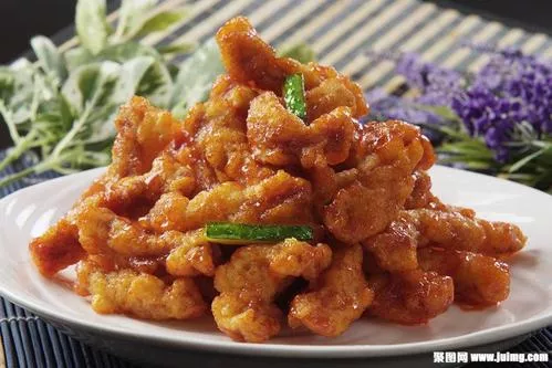 2.烹調(diào):炒勺放中火上,倒入花生油,燒至六成熱時(shí),將里脊片逐片放入油內(nèi),炸至呈深黃色發(fā)酥時(shí)撈出;炒勺內(nèi)留油35克,放蔥、姜、蒜末,炸出香味時(shí)烹上醋,加入醬油、清湯、紹酒燒沸,用濕淀粉勾英,再倒入炸好的里脊片,顛翻兩下,使芡汁都均勻地粘裹在里脊片上即成。