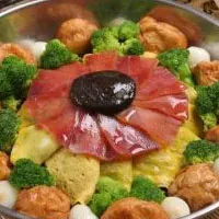 肴,敬請(qǐng)皇太后、皇帝和后妃品嘗。清朝承襲明朝品官等級(jí)制,官銜為一至九品,一品為最高,九品為最低,清朝將孔府列為當(dāng)朝一品官的官府。因而,皇帝對(duì)孔府用雞、豬蹄、鴨、海參、魚(yú)肚等各種珍貴原料烹制成的湯菜,賜名為“當(dāng)朝一品鍋”,成為孔府及所有一品官府名菜,歷代相傳。此菜1949年前在山東、江蘇、上海等地一些高級(jí)菜館仍有供應(yīng),后一度中斷?,F(xiàn)在隨著各幫特色菜肴的挖掘、整理而得以恢復(fù)發(fā)揚(yáng)。 一品鍋之名源于孔府,是由皇帝賜名的一款孔府名菜,其后代承襲衍圣公,在明、清兩代封爵為“當(dāng)朝一品”官銜。乾隆皇帝賜孔府《滿漢全席》銀餐具中最大的一件,稱當(dāng)朝一品鍋。另外還有一種圓形不分隔的一口鍋,名曰 “ 鐘鼎一口品鍋 ” 。后來(lái)的一品鍋,因放入的鍋料不同,又有燕菜一品鍋、魚(yú)翅一品鍋、海參一品鍋、什錦、素鍋等。傳統(tǒng)做法是用海參和魚(yú)肚等蒸制而成。成菜湯汁濃鮮,用料珍貴,風(fēng)味各異。