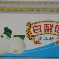 白梨瓜是近年來金鄉(xiāng)縣精心培育推廣的一種甜瓜新品種,其中胡集鎮(zhèn)種植最為出名。金鄉(xiāng)白梨瓜是一種營養(yǎng)豐富、無污染、純綠色食品。具有成熟早,產(chǎn)量大,含糖量高的特點(diǎn)。成熟果體雪白光滑,肉質(zhì)甜脆、口感清爽、味道鮮美、單體重約一斤,營養(yǎng)豐富,深受消費(fèi)者青睞。該品種經(jīng)國家農(nóng)業(yè)部檢測認(rèn)證為無公害食品。金鄉(xiāng)白梨瓜耐長途運(yùn)輸,適合向全國各地推廣,近年來主要銷往山東境內(nèi)和京津地區(qū)。目前,金鄉(xiāng)白梨瓜主要采用大棚種植,春節(jié)前后即已育苗,陽歷4月即可上市,因?yàn)樯鲜性纭①|(zhì)量優(yōu)、價(jià)格高,為瓜農(nóng)帶來了可觀的效益。