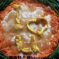 “水泊梁山”菜,造型新穎、美觀,具有水泊梁山的特點(diǎn),可謂色、形、味具佳。 制作方法是:大棗去皮、核,勾芡后,油炸至皮硬為止;熬糖汁琉璃,趁微熱在大盤中擺成“梁山”造型,并以果汁為水,山水相映。再用多種蔬菜加工成各式樹木、花草、帆船和走獸、魚蝦、蓮藕等,分別襯托于山、水之中。最后,用柑桔瓣構(gòu)劃成登山臺(tái)階,用蛋皮薄餅做成“替天行道”的杏黃大旗,直插于山頂,此菜即成,得名為“水泊梁山”菜。 這一綜合甜菜,造型別致,美觀新穎,外焦里嫩,味道香甜,誘發(fā)食欲,適宜下酒,是水泊梁山獨(dú)樹一幟的新創(chuàng)地方名菜。1980年聯(lián)合國(guó)水滸考察團(tuán)赴梁山時(shí),曾制作了這一道名菜,深受國(guó)際友人贊譽(yù)。