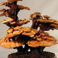 靈芝,亦稱仙草,《本草綱目》記載:久食輕身不老,延年成仙。古代帝王之家的如意即取形于靈芝,可見(jiàn)靈芝是富貴瑞祥之物。而且形狀奇物、色彩絢麗,極具觀賞價(jià)值??蒲腥藛T運(yùn)用其自然生長(zhǎng)規(guī)律,結(jié)合盆景藝術(shù),精心培育出獨(dú)特的花木形體的泰山赤靈芝,配以精致的底座,制成了盆景中的又一珍品。1999年,在昆明世博會(huì)上,泰山天然靈芝盆景榮獲銀獎(jiǎng)。