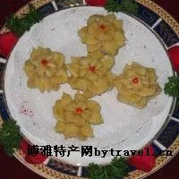 海棠酥 山東 ? 泰安 ? 寧陽 海棠酥 用料:水油面團300克,干油酥面團200克,紅顏色面團、綠豆餡、生油各適量。 制法: 1、取水油面團、干油酥面團,分別下劑20個。 2、把水油面團包入干油酥面團后搟疊2次,最后搟成圓餅,包入綠豆餡,用手捏成五角,做成海棠酥生坯。 3、把紅顏色面團做成小圓球,放在海棠酥生坯的中間為花心。 4、平底鍋內(nèi)加生油,用溫熱油炸至乳白色,盛出即成。特點:清熱解毒,適宜夏季食用。 注意事項:油溫不宜太低,以免影響造型。 贊 (0) 39 151 生成海報 松鶴同春 下一篇 0001-01-01 靠大蝦 上一篇 0001-01-01 相關(guān)推薦