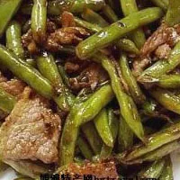 豬肉(肥瘦)100克,四季豆400克,大蔥5克,姜5克,大蒜(白皮)5克,白砂糖5克,淀粉(豌豆)5克,醬油20克,花椒3克,味精2克,植物油30克,豬油(煉制)30克。