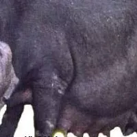 萊蕪豬體型中等,體質(zhì)結(jié)實(shí),被毛全黑,毛密鬃長(zhǎng),有絨毛,耳根軟,耳大下垂齊嘴角,嘴筒長(zhǎng)直,額部較窄有6~8條倒“八”字縱紋。單脊背,背腰較平直,腹大下垂,后軀欠豐滿,斜尻,鋪蹄臥系,尾粗長(zhǎng),有效07~8對(duì),排列整齊,乳房發(fā)育良好。