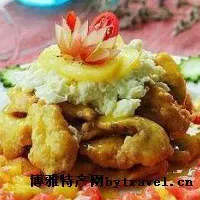 橙汁炸魚片 山東 ? 東營 ? 河口 材料:魚片半斤,雞蛋2個(gè),水果適量。 做法: 1、魚片用鹽、料酒,胡椒粉腌過,把雞蛋的蛋黃和蛋清分開,蛋黃打散加上炸粉調(diào)成面糊。 2、魚片沾上面糊放鍋里炸熟,取一個(gè)鮮橙榨汁,把橙汁加點(diǎn)糖和生粉水煮成芡汁淋在魚片上。 3、把剩下的蛋白用慢火炒成雪花狀放在魚片上,再放上些水果在粒四周。 贊 (0) 39 151 生成海報(bào) 油潑扯面 下一篇 0001-01-01 孤島鮮魚湯 上一篇 0001-01-01 相關(guān)推薦