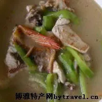 軍馬場沿路兩側排列著百余家大大的農家院落,都是經(jīng)營黃河口鮮魚湯的餐館。大大的廚房里,一溜兒排著十來口大鍋,大的足可以煮下一頭整羊??繅ζ鲋鴰讉€大大的水池,里面全是黃河故道的活魚,有鯽魚、黑魚、青魚、鯰魚、黃辣丁等。根據(jù)客人的要求,廚房里的伙計把魚從池中撈出過秤后,就蹲下身子,一腳踩著水管,左手捏魚,右手操刀,刷刷幾下,便把魚鱗打凈,刀口稍稍一挑,便刨開魚腹,魚肚雜物隨即取出,腳再稍一松動,那水管便把整條魚洗干凈了。 接下來是烹制。廚師伙計將鍋燒得近乎發(fā)紅,倒上油,冒青煙,便將一大勺蔥、姜、蒜頭和干辣椒之類的倒進去,即刻便爆出濃濃的香味,然后將洗凈的魚倒進去,又是一陣爆炒,很有眼力,看著火候一到便向鍋中倒入滾燙的沸水,蓋上高高的鍋蓋,再是陣悶煮。不長時氣,乳白鮮美的魚湯便出鍋了。當你細細地品嘗這鮮魚湯時,那餐桌上頓時靜悄悄,只有喝魚湯的美妙聲音回蕩在耳邊。如今,到黃河口旅游的客人,在飽覽博大神奇的自然景觀的同時,到魚湯店一飽口福,定是另一番享受。
