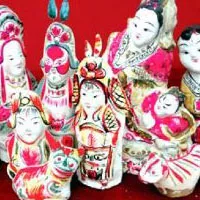 小郭泥塑之所以能夠暢銷各地,經(jīng)久不衰,是與藝人們的苦心鉆研,并從現(xiàn)實(shí)生活中吸取營(yíng)養(yǎng),不斷創(chuàng)新、提高分不開的。老藝人常說“做戲劇人物,要看戲臺(tái)上生旦凈末丑的形象和穿戴;做動(dòng)物,要注意雞、狗、牛、馬的神氣”。并說:“泥人是給孩子玩的,只要花梢好看就行,不能太真”。因此作品并不酷似實(shí)物,而是有所美化,有所夸張。但這種美化和夸張又都有一定限度,總離不了大譜。例如各種娃娃,往往要夸大頭部,做成“肥頭大耳”,這不僅表示健康幸福,而且也是兒童筆下的人物特征。他們做的“ 髻娃娃”,頭幾乎和身子等高,一派天真無(wú)邪的稚氣。但為了再現(xiàn)武生和刀馬旦的英姿,就沒有把“楊宗保和穆桂英”的身軀縮得太短。這些表現(xiàn)手法,也就是傳統(tǒng)藝人特別重視的“不似之似”。新一代的泥玩藝人,他們不僅繼承著家傳和師傳的某些獨(dú)特技法,而且深受現(xiàn)代戲劇、電影、年畫、工藝美術(shù)的熏陶,在表現(xiàn)手法上又有了新的突破,他們不囿于固定的形式,而是按照自己的審美觀點(diǎn)去創(chuàng)作,無(wú)論在題材上,或在形式上都充分發(fā)揮了自己的想象力和創(chuàng)造才能,使作品隨著時(shí)代的前進(jìn)而富有變化,逐步發(fā)展成題材廣泛,形式多樣,比較成熟的一種民間藝術(shù)形式。