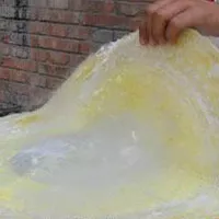 煎餅的制作工藝較復(fù)雜,它以麥子、高梁、玉米、谷子、地瓜等糧食為原料,經(jīng)過淘洗、浸泡,然后用石磨磨成糊狀物,群眾叫“煎餅糊子”。還有的地方在磨糊子前,放入1/3或一半的熟料,稱為“對半子”,群眾稱這樣磨出來的糊子好烙,烙出來的煎餅也柔軟好吃。磨糊子是很費功夫的事,二三十斤糧食一般要兩三個小時才能磨好,因為磨快了,糊子過粗,烙出來的煎餅自然就不好吃。磨的時候,添料必須是有經(jīng)驗的老手,要勤添少添,磨出來的糊子才細(xì)膩均勻。舊社會,一個家庭,常常是能抱得動磨棍的就去推磨,大半宿才能磨完二三十斤糧食。有錢的富裕人家才用得起牲口推磨。現(xiàn)在有了磨糊機,也可將處理干凈的糧食粉碎成面粉,再用水拌成糊子。但人們總認(rèn)為不如石磨磨出來的糊子煎餅好吃。