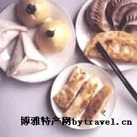 和面制皮,圓皮,可大可小。將餡放入皮兒之一側(cè)攤勻,折,取碗一只以沿對半圓之邊轉(zhuǎn)割,剔下的邊皮放入一邊再用。而后用平底之鍋或鏊子以文火煎烙,三翻兩反,塌包的肚就鼓起來,油從邊隙處微滲,聽得見吱吱作響,聞得見撲鼻之香。