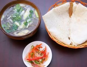 現(xiàn)在利民鎮(zhèn)的羊肉湯已傳遍縣城多家餐館了,利民羊肉湯已成了當(dāng)?shù)乇姸嘈〕灾凶钔怀龅男〕?,在周邊縣市享有盛名。虞城縣利民羊肉湯,選用當(dāng)?shù)禺a(chǎn)的20斤以上的健壯肥山羊,現(xiàn)用現(xiàn)殺,先是用羊骨、油熬制老湯,每天四點(diǎn)鐘開始上鍋,放上白芷、花椒、丁香、三代、草果、小茴、辣椒等十九味傳統(tǒng)作料,煮湯時(shí)放入大塊鮮羊肉同煮,肉熟后撈出待用。食用時(shí)把肉切成薄片,放在碗內(nèi),用沸湯沖三遍,加調(diào)料、味精、香菜、蔥片等,然后用鍋中的湯沖成羊肉湯,特色為“三清”,即上層油清,中層湯清,下層肉清,整體清澈透明,一眼見底,味道鮮美,不膻不膩,清香可口,再配以帶有芝麻的燒餅共食,真是美味佳肴。利民羊肉湯,于1993年受《鄭州晚報(bào)》專題報(bào)導(dǎo),于2000年被商丘市政府評為優(yōu)質(zhì)菜點(diǎn)。