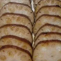 “蜜汁江米藕”原名“熟灌藕”,是歷史悠久的傳統(tǒng)甜菜。據(jù)傳“熟灌藕”始于元代,后經(jīng)歷代廚師不斷改進,成為“蜜汁江米藕”。此菜選用豫西南社旗縣唐莊白蓮藕,經(jīng)煮、釀、蒸、蜜炙而成,成菜軟糯香甜,為筵席名饌。白蓮藕個大節(jié)長,皮薄肉細,晶瑩如玉,甘美可口。一般的藕切開后都有許多細絲相連,牽扯不斷,故有“藕斷絲連”的成語,而唐莊白蓮藕卻切削刮剁都不見一絲,為藕中奇品。清代曾列為貢品,是不可多得的烹飪原料。 原料: 主料:白蓮藕500克。 配料:糯米100克。 調(diào)料:白糖150克,蜂蜜50克,熟豬油15克,青紅絲5克,桂花糖50克。 制作過程: (1)藕洗凈切去藕節(jié)。糯米淘凈,放冷水中浸泡3小時,撈出濾去水分,從藕的一端將糯米灌入藕眼,填滿放盤中,上籠蒸熟取出,用涼水泡2分鐘,揭去藕皮,晾涼后,切成0.5厘米厚的片。 (2)取一只凈碗,內(nèi)壁抹豬油,藕片放入擺成馬鞍橋形,撒上白糖(75克),上籠蒸15分鐘,取出扣在盤中心。 (3)炒鍋置中火上,將蒸藕的湯汁潷入,放入白糖,將汁收濃,再放入蜂蜜、桂花糖,攪勻后起鍋淋在江米藕上,撒上青紅絲即可上桌。 制作提示: 先將糯米泡好,藕去皮去節(jié),灌入江米,立即上籠蒸熟。放置時間稍久,藕色變黑,顏色、質(zhì)味皆差。