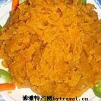 紅薯泥是杞縣的一道名菜。它的制作方法很講究,需先把紅薯煮熟,剝掉外皮,去其內(nèi)絲,用干凈的白布包裹起來軋壓成泥。然后將白糖倒入鍋內(nèi)化成糖漿,再兌入香油、紅薯泥不斷攪拌,呈柿紅泥狀出鍋。裝盤時,分層放山檀丁、玫瑰片、青紅絲、桂花糖。此菜味道甘甜,爽口開胃,色澤鮮艷,營養(yǎng)豐富。人稱“三不沾”菜(即:一不沾盤子、二不沾筷子、三不沾嘴)。每當(dāng)貴客臨門,杞縣人會熱情地端出這道風(fēng)味菜。在品嘗紅薯泥的同時,人們還會給你講述一個動人的故事。