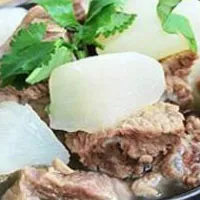 蘿卜燉牛腩砂鍋 河南 ? 平頂山 ? 郟縣 原料:牛腩、白蘿卜。 調(diào)料:姜片、蔥段、鹽。 做法: 1、牛腩洗凈切塊,飛水后沖凈,瀝干,放入砂鍋中;再加入沒過牛肉的清水,放入蔥段和姜片; 2、蓋蓋子,大火煮開后轉(zhuǎn)小火慢慢煲煮至牛肉軟爛,至少要1個半小時; 3、蘿卜去皮切塊,倒進砂鍋,調(diào)入適量鹽,煮開后繼續(xù)小火煲至蘿卜熟軟即可。 技巧: 1、鹽要后放,一開始就放的話牛肉不容易爛; 2、水要一次加足,多放點沒關(guān)系,湯也很好喝; 3、此菜吃的是原汁原味,所以沒放任何香料。 贊 (0) 39 151 生成海報 郟縣山兒西煙 下一篇 0001-01-01 咸豆腐腦 上一篇 0001-01-01 相關(guān)推薦