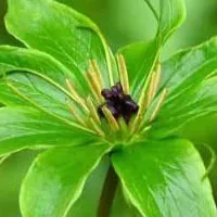 植物形態(tài) 多年生草本。葉6~10片輪生,葉柄長5~20mm,葉片厚紙質(zhì),披針形、卵狀長圓形至倒卵形,長5~11cm ,寬2~4.5cm?;ü那o頂抽出,頂生一花;花兩性,萼片披針形或長卵形,綠色,長3.5~6cm;花被片線形而略帶披針形,黃色,長為萼片的1/2左右至近等長中部以上寬2~6mm;雄蕊8~10,花藥長1~1.5cm,花絲比藥短,藥隔突出部分1~2mm。花期6~7月,果期9~10月。