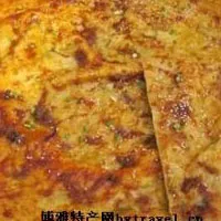 2.面揪劑子每個135---150克,搟皮抹一層滿薄薄的餡,包起來搟成餅,在餅的上面抹上一層勻稱的餡。在餡的上面在抹一層表面油。