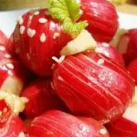 做法:1、蘿卜切片,用鹽、白醋、白糖、味精腌上兩小時(shí)。2、腌好的蘿卜片撈起裝盤(pán),把青紅指尖椒各半條切碎,香菜切碎,撒在蘿卜片上即可,簡(jiǎn)單、爽口、送粥。