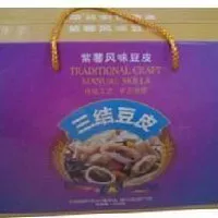 應(yīng)城豆皮加工始于上世紀(jì)80年代初,因豆皮質(zhì)白、耐煮、口感好,被作為禮品饋贈(zèng)親友。應(yīng)城傳統(tǒng)特色食品——三結(jié)豆皮,迄今已有300多年 的歷史,制成有白豆皮、綠豆皮、黃豆皮等三個(gè)系列六個(gè)品種,其中精制綠豆豆皮、精制生姜豆皮、精制大米豆皮、精制韭菜豆皮已在哈爾濱、烏魯木齊、上海、鄭州、香港、武漢等地有很大的需求量。僅武漢市的紅鋼城年銷量就達(dá)20萬公斤。