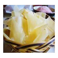 住在三結(jié)村的三姓人中,有一人曾經(jīng)是明皇宮里的御廚。清軍入主中原后,他乘隙逃離皇宮輾轉(zhuǎn)到了這里。在結(jié)拜為金蘭之后,更安居于此,并以其任過御廚的經(jīng)歷,希圖在烹飪膳食方面一顯身手。這里,盛產(chǎn)稻谷和綠豆、小麥等雜糧。他感到這里的稻米很有糍性,柔軟爽口,便細(xì)細(xì)琢磨用以加工成一種風(fēng)味特具的食品,可能更為俏銷。他就用稻米為主料,兼以綠豆或小麥,經(jīng)水磨成漿,放在鐵鍋中攤開烙成一張一張的面皮,再將面皮卷成筒,切成絲,攤放在籮筐或曬墊上晾曬成干絲,名為豆絲,或稱豆皮。平時(shí)可貯存起來,食用時(shí)取出即可,比米煮成飯熟得快,且別具一番風(fēng)味。比如煮食,先用清水將干豆絲沖洗一遍,待水燒開后下鍋,添入白菜及所需佐料后,撈起即可食用。還可炒食:將干豆絲用溫水浸泡至軟,再下鍋翻炒,佐以大蒜等配料即可食用。這樣制作的豆皮不僅本村老少喜吃,而且傳之于外,均爭相購食,比稻米還俏,又是經(jīng)過加工的,售價(jià)和收益比稻米更高。從此以后,三結(jié)村家家仿效,行銷于市,并取名為“三結(jié)豆皮”,盛傳不衰。“三結(jié)豆皮”以其“皮薄、均勻、色濃、耐煮、味長”的風(fēng)味特色,成為應(yīng)城城鄉(xiāng)居民喜愛的傳統(tǒng)食品。