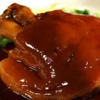 制作一道紅艷膀有七道工序:第一道工序是整潔,首先選皮薄肉嫩的豬前膀整理干凈,將切割不整齊的皮肉去掉,保持外形美觀;第二道工序是香煮,將整膀放進配有八角、桂皮、生姜、花椒和食鹽的溫水中煮至熟而不爛,勿傷外形;第三道工序是上糖,將煮熟的整膀從湯鍋中取出,趁熱涂上蜂蜜,但不可太厚,適可而止;第四道工序是紅炸,這是制作紅艷膀的最重要的一環(huán),需選用新鮮植物油,將膀炸至紅亮即可撈出,切莫過火,過火則發(fā)黑;第五道工序是回煮,將炸好的線艷膀再收入高湯中復(fù)煮至皮肉粉軟;第六道工序是配料,配上高湯和高湯煮熟的木耳、香菇、黃花和紅棗,紅棗需是十顆,取紅紅火火,甜甜蜜蜜、十全十美之意;一并盛入大湯碗中;第七道工序是透蒸,將配好料的紅艷膀邊同湯碗一起入蒸籠用旺火蒸透,蒸得香氣四射,最后撒上蔥花端上餐桌。經(jīng)過上述七道工序制作出來的紅艷膀,形狀美觀、色澤紅亮、香氣濃郁、入口即化、油而不膩、咸中帶甜、湯汁圓潤、回味悠長,老少咸宜。真是美名美食。