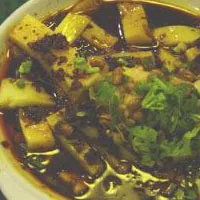 米豆腐源于湖南,是土家族、苗族地區(qū)一種傳統(tǒng)的風味小吃。以永順縣所產的最為聞名。將米洗凈,浸泡一天,和水磨成米漿。將米漿放入鍋內燒熱,一邊加適量的食用堿(舊時用油桐果殼燒灰熬成的土堿),一邊用力攪拌,直至煮熟,再放于盆內,使之冷卻,即成。食用時,用細線將成因的米豆腐劃成1~2cm3的小顆粒,泡入清水中,再備上各種佐料(辣椒末、香蔥、姜末、西紅柿醬、味精、醬油等),用熱水溫燙,盛于碗中加佐料,即可。其味清香嫩滑,酸辣可口。農歷夏日,十分盛行。舊時亦有用玉米制成的“包谷豆腐”,其制法和食用方法、味道均與米豆腐相似。