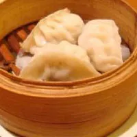 【菜名】 灌湯蒸餃 【所屬菜系】 湘菜 【特點】 皮薄軟潤,鮮嫩可口。 【原料】 主料 精白面粉250克,糯米粉70克,淀粉70克,凈豬夾心肉500克,湯凍500克。調料 熟大油50克,香油10克,白糖、醬油、鹽各8克,味精10克,蔥、姜汁100克。 【制作過程】 (1)制餡心。將豬肉剁成末,取一半放于鍋中,加入湯凍、鹽、味精、醬油、白糖攪和,再加入蔥、姜汁,拌勻上勁,再用熟大油、香油拌好。然后將湯凍捏碎,摻入肉內拌和即成餡心。 (2) 制餃皮。將精白面粉、淀粉、糯米粉和白糖放在一起,混合均勻,中間扒出個凹窩,先加入9成熱水,拌成似片狀雪花,待稍涼后再加涼水拌和揉潤,搓成長條,用手揪成40個擠子,再用餃搟杖搟成薄圓形皮子。 (3) 包餃、蒸熟。托餃皮,放入餡心,捏成蒸餃形狀,上屜,蓋嚴籠蓋,火要旺、汽要足,蒸熟取出即成。