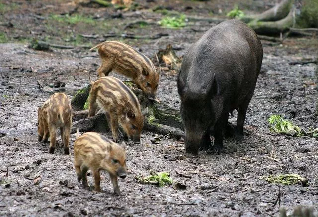 國家唯一公開鼓勵全社會予以徹底消滅的大型野生動物即為野豬。野豬十分野蠻、兇暴,時常搗毀莊稼,傷人性命,無惡不作,武陵源的野豬自然也不會干什么好事。八十年代,天子山開發(fā)初期,敬有權(quán)先生每天早上天不亮即背著攝影機去搶拍天子山日出之景。一天早晨,在一條小路上突然遇到兩頭五六百斤重的大野豬帶著四五頭一百來斤重的小野豬雄糾糾、氣昂昂地向他走來,敬有權(quán)先生當時嚇得馬上就倒在路旁的小草叢中裝死。野豬經(jīng)過他身旁時,停下腳步嗅了嗅他身上的氣味,以為他是死人(野豬不咬死東西),終于揚長而去。野豬最厲害的是它的嘴,俗話說:“三百斤的野豬,全靠那張嘴巴子?!币柏i的嘴巴勝過鐵犁。( 張家界)