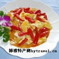 3、鍋內放底油,燒熱后下姜片、蒜片、泡椒末煸香,放入響螺片,加泡椒段、精鹽、味精、雞精、蠔油、蒸魚豉油調好味,烹入鮮湯稍燜,再收濃湯汁,勾芡,淋香油、花椒油,出鍋蓋于黃瓜上即可。