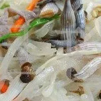 吳川有一道特色菜叫做腌泥丁,其實就是白灼泥蟲,把泥蟲通干凈之后在水里灼十幾秒就得趕緊撈出來,否則味道就老了。生吃也可以,很多人拿它送白酒喝,用高度酒殺一下直接放進嘴里,比灼更清甜,不過出于衛(wèi)生考慮,還是灼一下比較放心,呵呵。還有一種做法是和白蘿卜絲一起炒,清熱敗火,還可以醬爆。