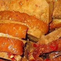 1、把豬肉的肉皮刮洗干凈,放入冷水鍋中,上火煮至八成熟,撈出用凈布擦去肉皮上的水分,趁熱抹上醬油。