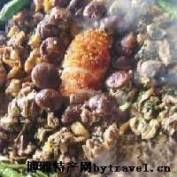 老板說道,盆菜用的材料大部分是自己出產,雞、鵝是自己養(yǎng)的,木瓜、白菜也是自己種的,不會添加激素,品質絕非市場上的肉菜可比,所以稱作農家盆菜。度假村還有一些“看家”菜,如將軍鵝、坑螺炆雞以及憶苦思甜農家菜。