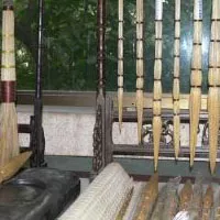 茅龍筆是新會著名特產(chǎn),五百年來一直都有生產(chǎn),暢銷全國各地,在東南亞一帶享有盛名。其發(fā)明者是廣東大儒陳白沙先生。白沙先生用新會圭峰山上的白茅制成茅龍筆,寫出來的書法生辣野趣,剛勁有力,在當時蜚聲全國,影響深遠,有“嶺南一人”之譽。白沙先生對自己創(chuàng)造的茅龍筆感情甚深,尊稱為“茅君”。在他的詩中有贊茅龍筆之神奇的詩句:“茅君稍用事,入手稱神工”。他晚年病中不能用茅龍筆寫字了,概嘆曰:“長楫謝茅君,安靜以待終。”白沙先生現(xiàn)留下來的書法書跡很多,如《慈元廟碑》(石刻行書)、《“忍”字贊》(木刻行書)、《種萆麻》(紙本手卷,行草書)等。