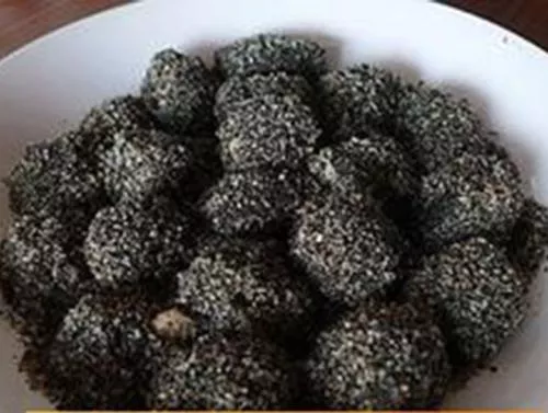 “潮汕落湯錢”是在潮州傳統(tǒng)小食“糯米錢”的基礎(chǔ)上,加以創(chuàng)新而演變來(lái)的,它吸收傳統(tǒng)小食的優(yōu)良做法,而對(duì)傳統(tǒng)小食一些不足之處加以改進(jìn),從而使這一小食更加完美,是一款具有代表性的創(chuàng)新潮州小食?!俺鄙锹錅X”在制法上繼承了“糯米錢”的一些優(yōu)點(diǎn),比如糯米粉團(tuán)煮熟后,放置盆中,用木棒反復(fù)擂攪,這樣的好處是使熟粉團(tuán)更加純滑,更具韌性。但傳統(tǒng)“糯米錢”是在粉團(tuán)熟后,用手捏成小塊,滾上糖粉白芝麻后即成,這樣既不衛(wèi)生,且煮熟糯米粉團(tuán)直接食用,口感太粘,所以“潮汕落湯錢”改成熟糯米團(tuán)入鍋用蔥油煎至兩面微脆,再改刀切塊裝盤,便克服了傳統(tǒng)“糯米錢”的不足之處。