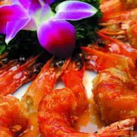 選九節(jié)蝦,貪其形夠大、肉夠鮮,做出來的菜式才大方得體;蛋漿中加入少許咸蛋黃,能給菜式增色;內(nèi)釀的百花餡,既能在受熱時(shí)封住蝦的汁液不外流,還與“瘦”身的蝦配合起來增加口感,一肥一瘦,相得益彰;韓國(guó)燒汁帶芝麻香味,汁濃,買回來后還要經(jīng)再加工,而日本燒汁偏咸,較稀,不合用。 材料: 大九節(jié)蝦、百花餡、韓國(guó)燒汁等。 做法: ①百花餡以鹽、糖、酒等調(diào)味,九節(jié)蝦去蝦槍、須、腳,打開蝦頭去內(nèi)臟,蝦身開邊,釀入百花餡; ②滾上蛋黃、咸蛋黃、生粉等調(diào)成的蛋漿和生粉; ③下6成油溫的油中炸至金黃色,撈起瀝干油,以韓國(guó)燒汁調(diào)味即可。