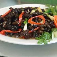 山坑螺呈圓錐形,如小手指大小,每年秋天是吃山坑螺的最佳時(shí)節(jié)。韶關(guān)地區(qū)爆炒山坑螺的方法很精細(xì),先將螺放入清水浸凈后再放入冷雞湯中浸泡喂養(yǎng),以增加其鮮甜。爆炒時(shí)要配齊青椒、紫須、姜、蔥等佐料,炒好以后的山坑螺香鮮無(wú)比。在街邊小店和夜宵排檔上都能吃到。