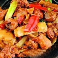 南雄山清水秀,養(yǎng)出的鴨子很出名,肉質(zhì)很豐厚,口感柔軟。我們吃的酸筍炒鴨,是用新鮮鴨肉拌著酸筍、辣椒,先炒至金黃,再燜至爛熟,酸筍的酸味和辣椒的辣味都完全滲入到鴨肉里面去了,端上來的時(shí)候只聞得一陣香辣的味道,嘗起來更是滋味無窮。酸味拌著辣味,還有鴨肉本身的肉香,一起伴隨著每一下咀嚼而沖開來,盈滿了整個(gè)口腔和鼻腔,十分的霸道。因?yàn)橛兴峁S的參加,辣味更甚,只吃了一塊,便覺得胃口大開,忍不住要多吃兩口飯。其實(shí)在平常人家,若是做這種酸筍鴨,一定要隔餐吃,才覺得好味的。因?yàn)槿庵鋵?shí)很濃香,材料的味道大多留在了肉汁里,即使?fàn)F再爛,也是不能完全滲透到肉里面,若是隔了一餐來讓它入味,再重新燉熱,則更加能體會(huì)酸筍鴨的無窮風(fēng)味。
