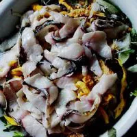 連山魚生 廣東 ? 清遠(yuǎn) “吃生”是壯族人的特殊飲食習(xí)慣 把鮮鯇魚(至少要兩斤以上),洗凈破開(不能沾生水),把魚臟取出另作處理,把魚肉一片一片剝割出(無(wú)骨),切成薄片,放在篩上晾干,拌以酸醋、鹽、油、生姜、蔥花、蒜米等佐料,密蓋幾分鐘即可吃。 贊 (0) 39 151 生成海報(bào) 連山五色糯米飯 下一篇 0001-01-01 豬血糯米灌腸 上一篇 0001-01-01 相關(guān)推薦
