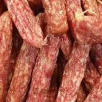 而且大家在購買時還可發(fā)現(xiàn)一個特點,就是它一節(jié)節(jié)特別短小,幾乎象一個大紅棗一樣,所以又叫棗腸??赡苁钱斈昴莻€姓王的村民為了節(jié)約又取食方便而做成這么小的吧。不過它食用起來確實非常方便,而且還有個好處,比如說你剪取幾個放在飯上蒸熟時,它的香味都會包含在腸里,不會散失,等到一口咬下去時就香氣滿嘴,特別濃郁。