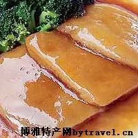 鮑汁扒柚皮是廣州的知名美食,粵菜風(fēng)味。第一口,吃不出什么材料,淋而不爛,口感豐滿,一點(diǎn)也沒有柚皮的苦澀味,極盡浸泡的功夫。其制作也相當(dāng)講究。先將柚皮去苦澀味,排放在鐵板上,用小棠菜拌邊,再扣入鮑汁上桌,菜式中西結(jié)合,別有風(fēng)味。
