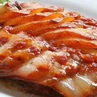 蜜汁叉燒 廣東 ? 廣州 ? 白云 原料:半肥瘦豬肉(以腿肉為好)1000克,精鹽20克,靚淺色醬油10克,深色醬油10克,柱候醬5克,白糖40克,黃糖40克,五香粉4克,大茴粉1克,粉酒30克,芝麻醬15克。 制法: (1)將豬肉用刀改成厚薄均勻的長條狀,將改好的肉條放在潔凈的瓦盆里,加上上述味料拌勻,腌約45分鐘至1小時(shí)。 (2)用叉燒環(huán)將肉條逐條掛著,隨即放在爐上用中火燒約30-35分鐘,取出淋上糖漿。 贊 (0) 39 151 生成海報(bào) 高陂頭燒雞 下一篇 0001-01-01 深井軟骨雞 上一篇 0001-01-01 相關(guān)推薦