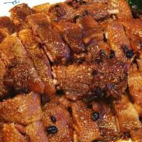 增城有一半的本地人與一半的客家人,因此這里的客家風(fēng)味亦很地道。客家焗鵝是先將整只的鵝放在鍋里滾動,直至六七成熟,再放進香菇等林林總總的配料,與鵝一起翱至熟,這種方法做出來的鵝,香料可以滲透到鵝的肉里,較為入味,另一方面鵝肉肥而不膩。
