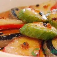 出鍋的煎釀三寶顏色鮮艷,味道怡人,讓人食欲大開。釀苦瓜微苦鮮香,不但有清熱解毒、明目敗火、開胃消食之效,吃了還可以暖胃益氣。喜歡吃辣椒的人更是不能錯過釀辣椒這道菜,吃起來不但有肉的鮮香,還夾雜著辣椒的淡淡香氣,可謂兩者兼得。釀茄子的造型比較像肉夾饃,也就是兩瓣茄子中間夾著肉,口感也很不錯。