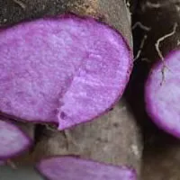 紫玉淮山屬中熟品種, 生育期為210天。一年生或多年生纏繞性藤本植物。株高400厘米~500厘米,側(cè)蔓開(kāi)展度200厘米~300厘米;莖,右旋,四棱形,主莖粗約0.4厘米,有淺紫色短棱翼;葉片長(zhǎng)10厘米~16厘米,葉片寬6厘米~10厘米,葉柄長(zhǎng)約12厘米,葉片呈闊卵形,先端漸尖,基部闊心形,青綠色,葉面光滑,葉脈網(wǎng)狀,主葉脈數(shù)7條,葉柄的基部和葉脈相連部分均為紫紅色;葉序,中部對(duì)生,基部和尾部葉片互生;葉腋間不長(zhǎng)或少長(zhǎng)零余子;不開(kāi)花或極少開(kāi)花,穗狀花序,白色小花著生于扁三棱形蒴果的先端。薯塊呈長(zhǎng)棒形,粗長(zhǎng)順直,長(zhǎng)80~100厘米左右,單株薯重1.5公斤~2.5公斤,畝產(chǎn)量1500公斤~2500公斤;薯皮紫紅色或棕褐色,蘆頭淺紅色;薯塊須根較多,薯面平滑,不開(kāi)裂,耐貯性強(qiáng),商品性好;肉質(zhì)紫紅色,緊實(shí),微甜,生食爽脆,熟食口感綿粉細(xì)膩,微香。生長(zhǎng)勢(shì)旺盛、分枝多;適應(yīng)性強(qiáng),喜溫暖和強(qiáng)光照,生長(zhǎng)適溫為20℃~30℃。耐熱性、耐旱性強(qiáng),耐澇性、耐寒性中等。可加工成片、粉等。