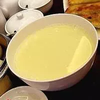 每一位客人發(fā)一個大碗,服務(wù)員不斷提壺加沖。它的豆?jié){供應(yīng)方式也象西方的崐咖啡館或者中國茶樓似的,咖啡和茶水不限量地供應(yīng)。和當(dāng)?shù)氐呐笥颜勂?,我得知崐人們的肚量是相差很大的。一般人只喝一兩碗,但也有人能夠喝四碗五碗,聽說最崐高紀(jì)錄是有人喝過八碗。那大概也是“大塊吃肉,大碗喝酒”之輩啦。