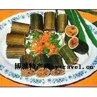 竹筒飯是廣西少數(shù)民族常見的特色食品之一,嶺南一帶盛產(chǎn)竹子,憑祥的氣候和環(huán)境十分適宜竹子的生長,境內(nèi)氣候?qū)賮啞釒н^渡型,陽光充沛,熱量較足,溫暖濕潤,雨量充沛,無霜期長,適應(yīng)多種植物生長,尤其是竹子的生長。 憑祥有著悠久的種竹、用竹和加工竹子的歷史。據(jù)記載,憑祥使用竹子加工工具早在戰(zhàn)國時(shí)期就出現(xiàn),而竹子作為加工食品的一種工具是非常有特色的,因?yàn)橹褡佑星逑阄叮裢诧埵前汛竺缀退诺街褡拥墓?jié)中,密封后烤熟,更能保持竹子的香味。