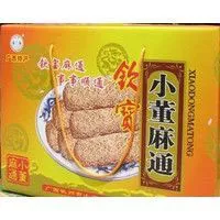 小董麻通分為黑麻通和伯麻通兩種,黑麻通用黑芝麻制作,白麻通則用白芝麻或退殼的黑芝麻制作,其中以白芝麻制作的麻通最佳。小董麻通主要有“董江”和“銅魚”兩個牌子產(chǎn)品,均為上品,其余牌子次之。