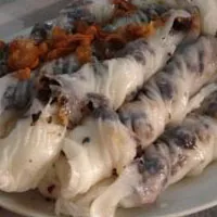 防城卷粉是選用優(yōu)質(zhì)大米(一般的大米沒有韌性),經(jīng)過一夜浸泡,用石磨磨成槳備用;然后用勺把約八十克的米槳均勻地倒在蒸格(已經(jīng)燒開的鍋)上蓋好;等看到冒出蒸汽時就可以把蒸格拿下,再把配料(配料一般是由云耳,肉碎,蝦肉等組成)均勻地灑在薄薄的.透明的.細(xì)膩潤滑的米粉上,再用一條細(xì)細(xì)的竹子一卷;一條晶瑩透亮,熱氣騰騰的卷粉就到了你的面前,你的面前早已有了一碟肉未上湯,你可以把卷粉放到湯碟上慢慢享用,你能吃醋的話,也可以加醋;一般每人能吃五條吧,很便宜的。