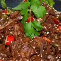 據(jù)考究,醋血鴨最早起源于約公元300多年前晉代的全州縣文橋鄉(xiāng)。據(jù)史實和口耳相傳:三國末年,由蜀丞相諸葛亮親自指定的接班人蔣琬(大司馬)在蜀國滅亡時與長、次子蔣斌、蔣顯同死國難后,其夫人毛氏帶著第三子回到祖籍全州。老夫人去世后于晉惠帝永熙元年(公元291)葬在今文橋鄉(xiāng)。因毛老夫人后來被謚封為安陽候一品夫人(見現(xiàn)存毛氏墓碑),所以她的墳是有人守墓的。若干年后的一次半年節(jié)(農(nóng)歷六月六),本來正午時接班的下午班守墓人因過節(jié)遲到了半個時辰,上午班守墓人1后趕回家時,已經(jīng)是未時了。全州人有個鐵定的風(fēng)俗,半年節(jié)這天一定要?dú)Ⅷ喿?、煮新米飯祭谷神敬狗嘗新(如未收早谷則剝幾粒風(fēng)頭谷的新米摻于飯中,用第一碗飯和煮好的鴨頭鴨腳祭谷神后喂狗,傳說洪水登天門時是狗尾巴保住了谷種)。守墓人的妻子是個見血暈頭的婦人,所以到未時還未殺鴨。性急的丈夫邊怨妻子邊殺鴨時,錯把妻子準(zhǔn)備醋黃瓜用的半碗酸水(全州人自古愛吃酸辣,家家戶戶有酸壇數(shù)個),當(dāng)成了準(zhǔn)備沖鴨血的鹽水,把鴨血淋進(jìn)了酸水碗中。情急之下,鴨熟出鍋時才記起鴨血未放,丈夫舍不得讓鴨血浪費(fèi),也不管血凝固與否,順手把一碗鴨血倒進(jìn)鍋里,正所謂忙0錯,當(dāng)發(fā)現(xiàn)鍋內(nèi)鴨肉散發(fā)出一股刺鼻酸味時,夫婦倆再怎么互相埋怨也為時已晚——想吃怕吃得,倒掉舍不得,怎么辦?帶著七分氣、三分試的丈夫干脆添柴加火,并在屋后摘一把有異香的嫩花椒籽,又在屋前采一抓紫蘇茴香,連洗未洗就丟進(jìn)鍋內(nèi),想把一鍋有些湯的鴨肉變成炒鴨,用香味去除異味。誰知鍋里鴨肉在炒拌中發(fā)出陣陣異香,且越炒越香,在炒干出鍋后,夫婦二人對著這碗紫醬色的奇菜越吃越有味,并叫來左鄰右舍品嘗,眾人邊吃邊稱絕,醋血鴨由此產(chǎn)生,并在全鄉(xiāng)、全縣逐漸推廣普及。全州醋血鴨因源于文橋,其鴨又以文橋小腳小腦殼鴨為正宗品,該鴨在文橋養(yǎng)殖亦有近2000年的歷史,乃當(dāng)?shù)貍鹘y(tǒng)養(yǎng)殖品種,歷代縣志均有記載,所以不少人也稱其叫文橋醋血鴨,迄今1600余年矣。