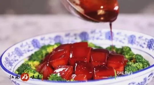 2.將肉在沸水鍋中略氽,洗凈,鍋內(nèi)放小竹架,將皮肉朝下放入鍋,將蔥、姜、紹酒、醬油、白糖、腐乳鹵和精鹽一克,水250毫升,旺火煮沸,小火燜燒約半小時(shí),加紅曲粉,繼續(xù)燒約半小時(shí),至八小時(shí)撈出,皮朝下將入碗內(nèi),加入原湯汁,蓋以平盤(pán)上籠用旺火蒸酥為止。